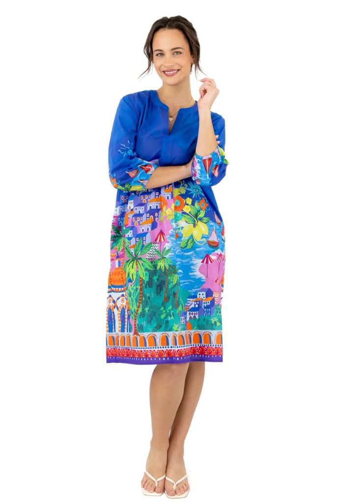 A lightweight pure cotton tunic dress with a flattering A-line cut and all over print. Featuring a tunic neckline, 3/4 sleeves with elastic cuffs, and side pockets, its the effortless choice for everyday wear.