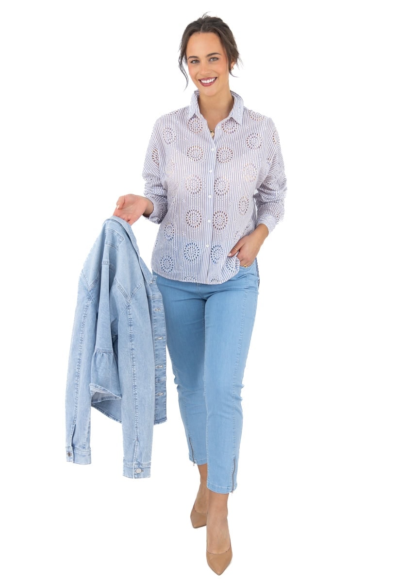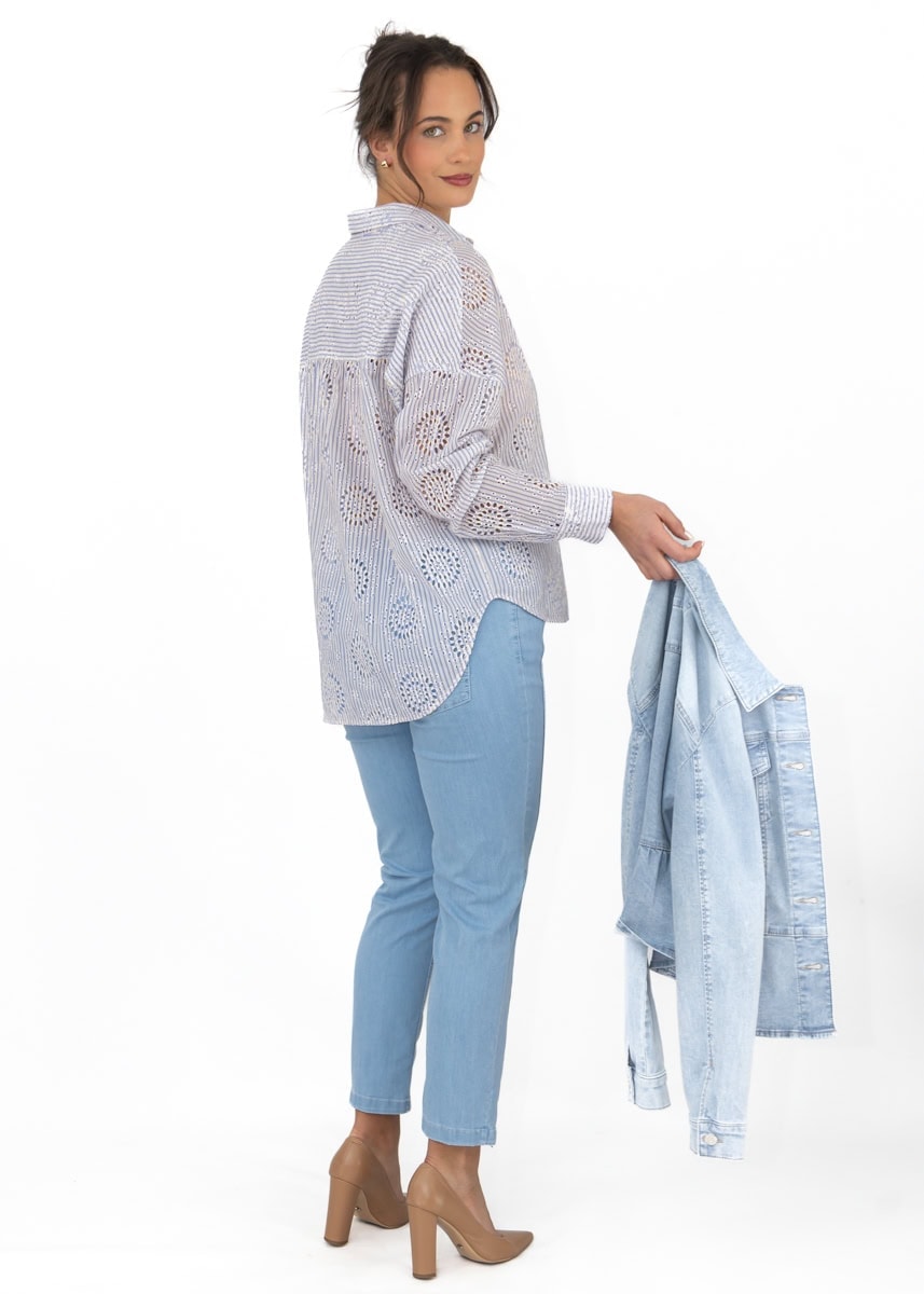 This look layers soft tones and structured shapes. A refined take on casual denim.