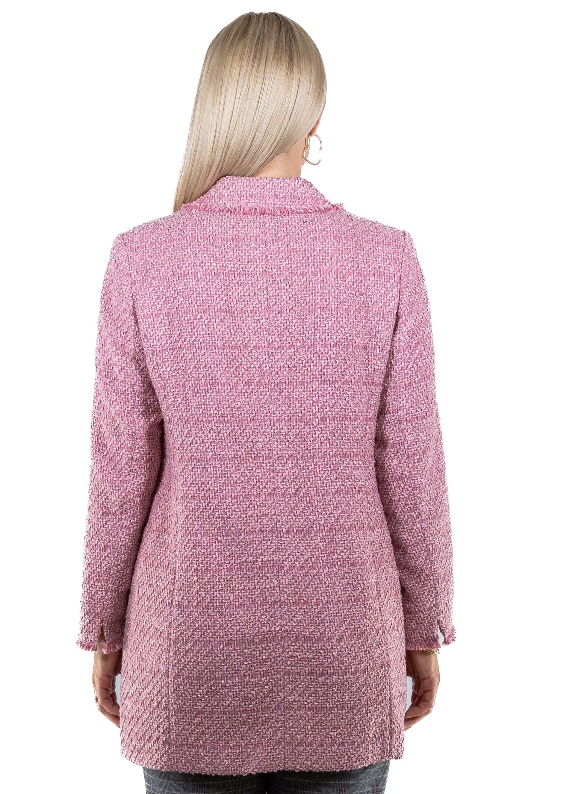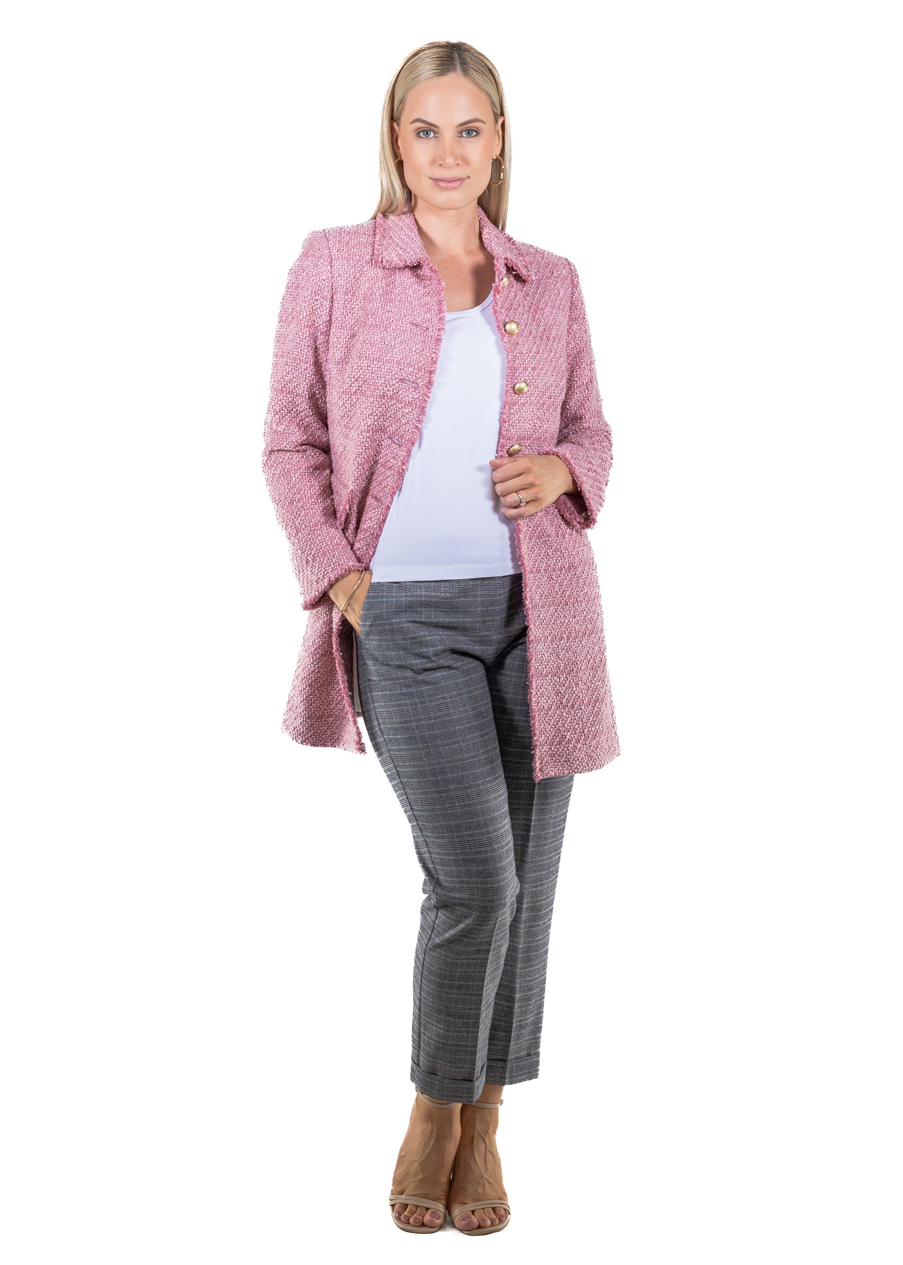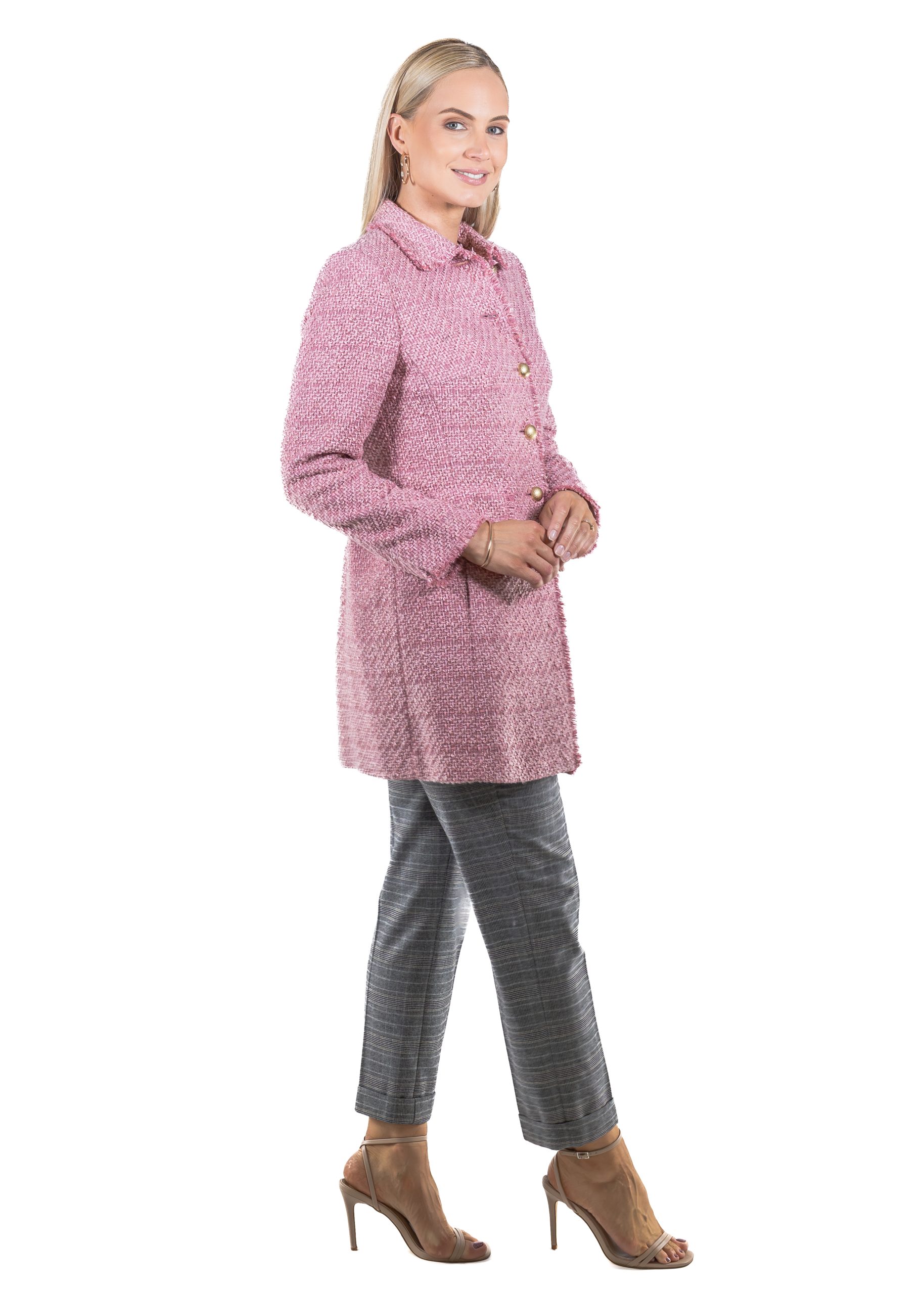A confident silhouette softened by colour. Tailored, composed and quietly commanding.
