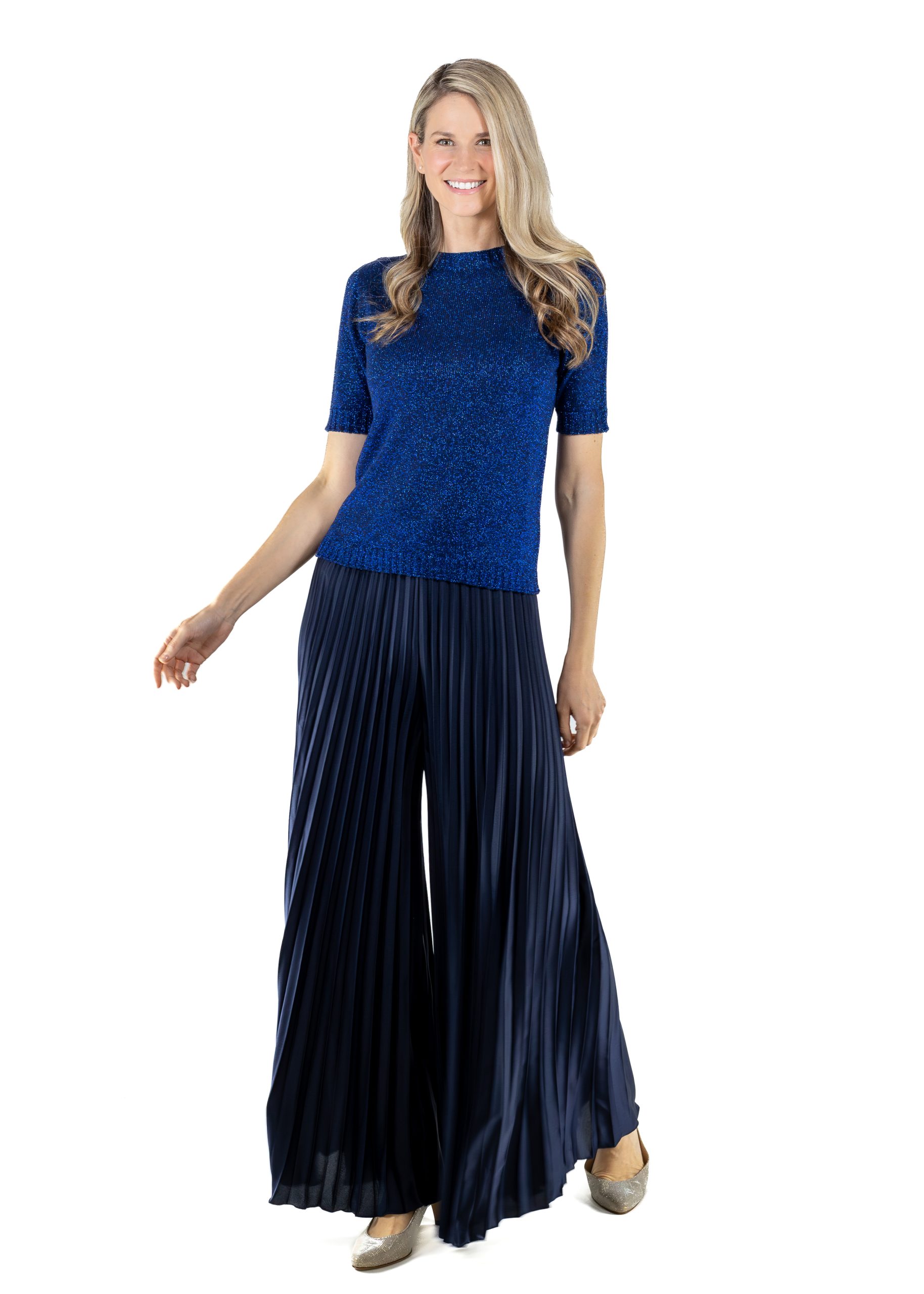 Effortless sparkle balanced with fluid tailoring, creating a comfortable yet refined look that moves beautifully from day to evening, finished with a subtle touch of glamour.
