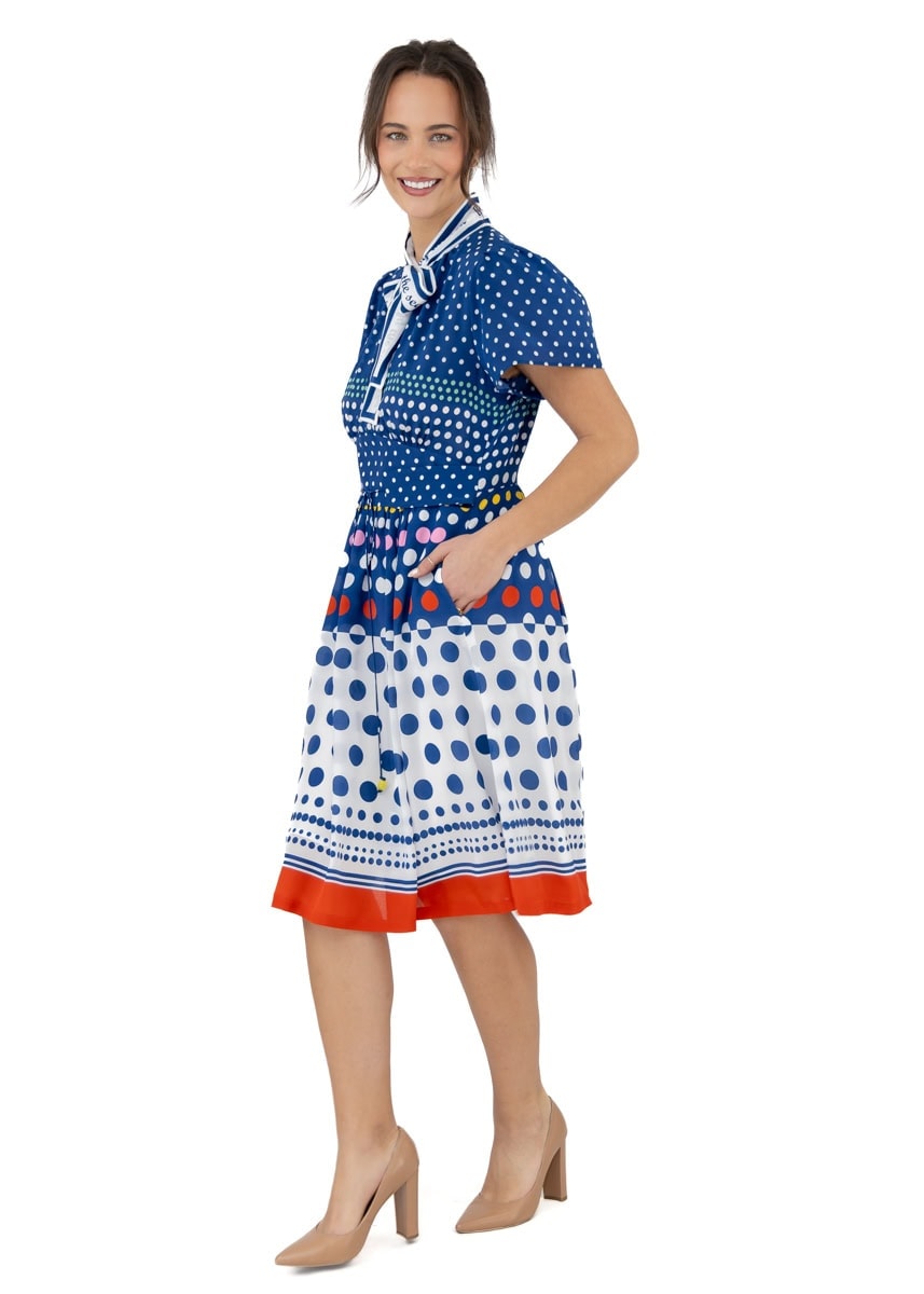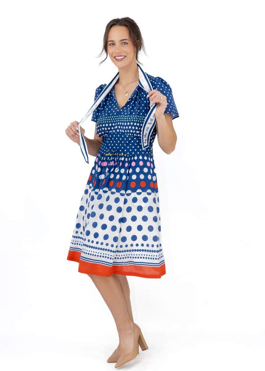 Silk Seas is crafted from 100% silk crepe de chine, offering a soft drape and gentle movement with every step. The half sleeves add effortless elegance, while the tie belt gathers the waist with a flowing bow, delicately inscribed with by the sea.