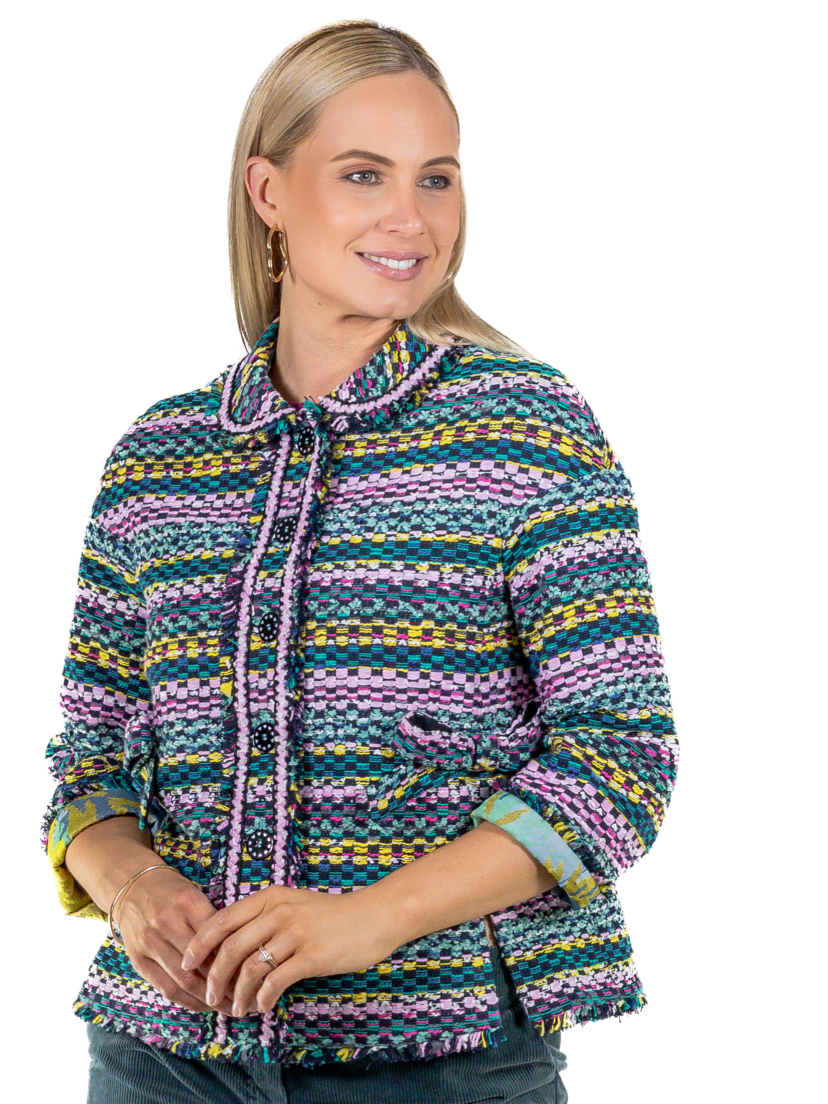 A modern play on texture and tailoring. This look balances structure with softness. Polished, distinctive, and effortlessly wearable.